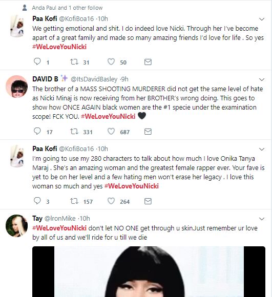 After Nicki Minaj's older brother Jelani Maraj was convicted of raping his 11-year-old stepdaughter on Thursday afternoon, thousands of her fans immediately took social media to show their support.