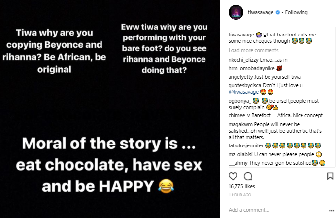 Yes 'It cuts me some nice cheques though' - Tiwa Savage replies people criticizing her for performing barefoot