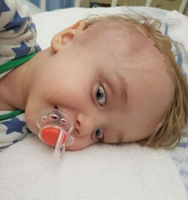 At the hospital, he had excruciating shunts put into his head to drain the fluid from one of the cysts in his brain which left a visible scar on his skull. He also started chemotherapy in a bid to shrink the non-cancerous tumour.