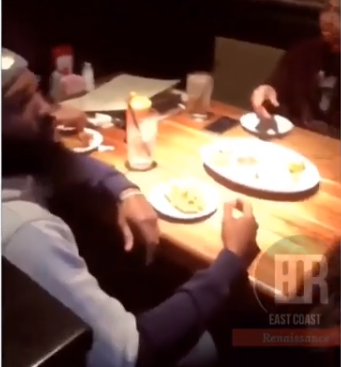 Patrons of the restaurant stood watching the scene as the side chic was screaming, "Give me my keys," while the mother of his children was saying, "By the time I get back, get out of my motherf***ing house. Get all your sh** and get out of my house."