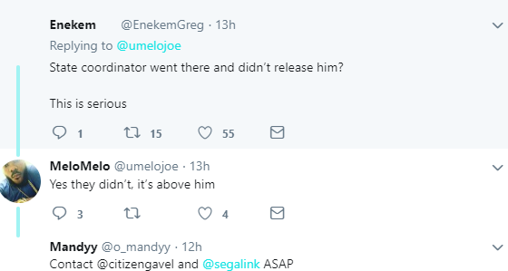 Despite showing them his NYSC ID card, he's still being held in prison. NYSC officials have also reportedly been to the prison to bail him out all to no avail.